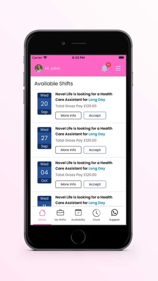 Our app helps nurses, carers, and other healthcare workers to create accounts, add their information and upload their certificates and documents. Care homes and hospitals can post shifts through the app and the shift notifications can be sent to the allocated staff so that they can view and accept the shifts. The staff can also clock in /clock out and upload timesheets or signatures as proof of their work.