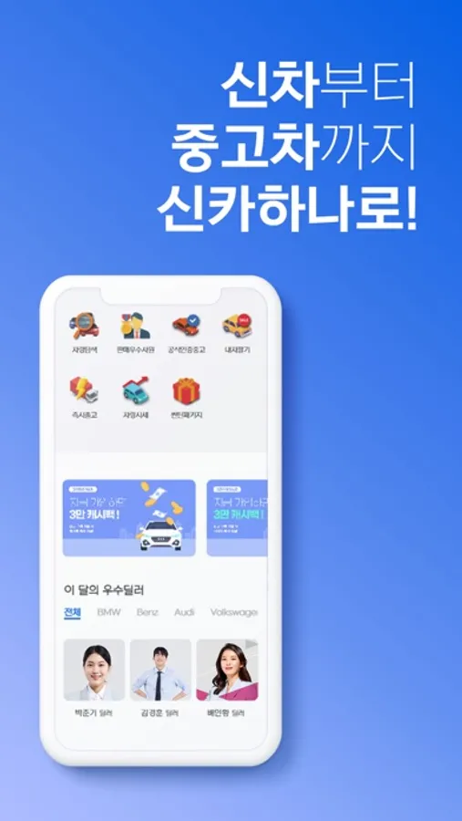 신차, 중고차 구매/판매 상담 신청할 수 있는 앱입니다.