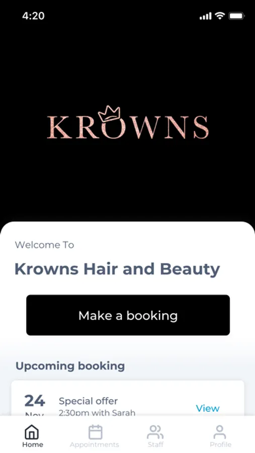 The Krowns Hair and Beauty app makes booking your appointments and managing your loyalty points even easier. You're just a few taps away from feeling good and looking great!