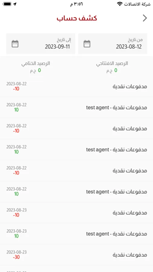 • كشف حساب العميل به تفاصيل المعاملات المالية