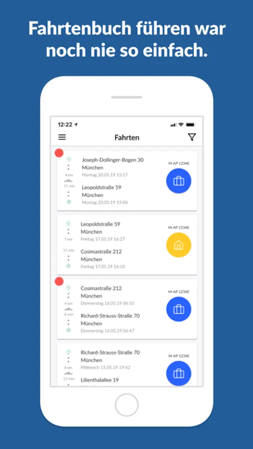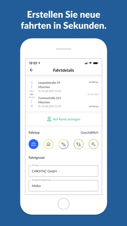 Als Ergänzung oder Ersatz für Ihr manuelles Fahrtenbuch – das digitale CARSYNC Fahrtenbuch. Profitieren Sie von der unkomplizierten Erfassung von Geschäfts- oder Privatfahrten, zeit- und ortsunabhängig mit dem Smartphone, unkompliziert und schnell. Mit der Nutzung von Fahrtenbüchern müssen Privatfahrten beim Finanzamt nicht mehr pauschal über die 1 Prozent-Regelung versteuert werden. Abhängig von Fahrzeugmodell und Streckenprofil kann die Nutzung des Fahrtenbuchs über 2.700 Euro Steuervorteil einbringen. Sie erhalten außerdem Informationen über offene Aufgaben. Wohn-, Arbeits- und Familienfahrten können erfasst werden. Umwege werden automatische erkannt und eine Deklarierung als Mischfahrt wird möglich. Optional: Die Pflege des digitalen Fahrtenbuchs via Internet-Browser über app.carsync.de/
