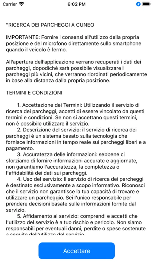 All’apertura dell’applicazione verrano recuperati i dati dei parcheggi, dopodichè sarà possibile visualizzare i parcheggi più vicini, che verranno riordinati periodicamente in base alla distanza dalla propria posizione. Cliccando su Raggiungi potrai arrivare al parcheggio.