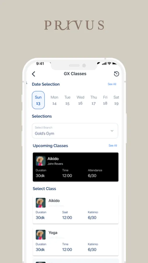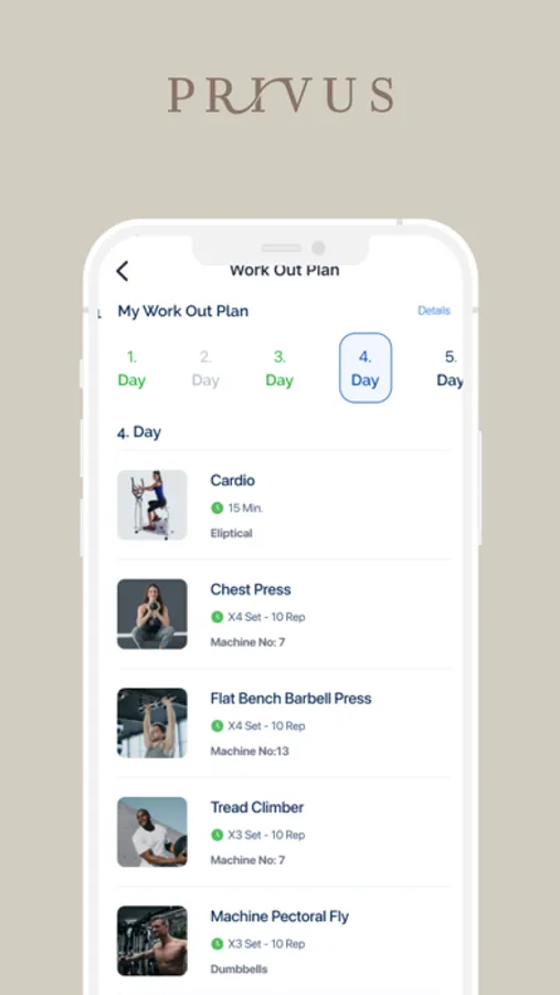 PRIVUS members can follow fitness programs. This app also allows you to make appointments for group training or personal training.