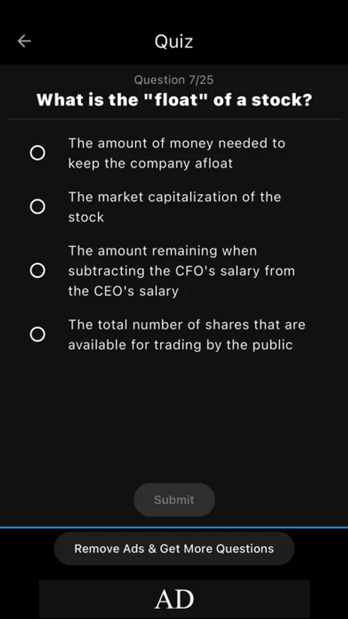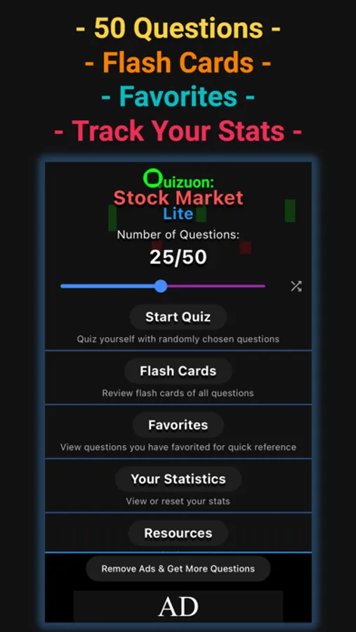 This Lite version of Quizuon: Stock Market contains advertisements and has only a portion of the questions.