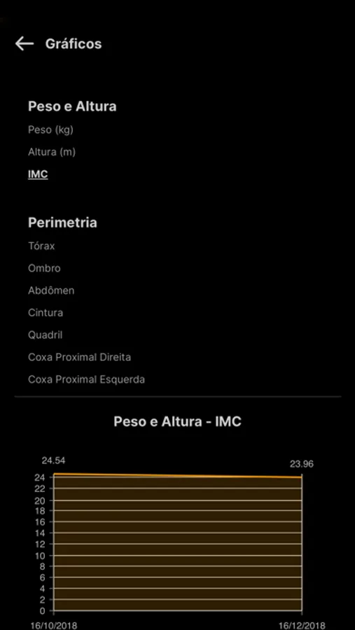 - Gráficos da sua evolução física e do seu peso