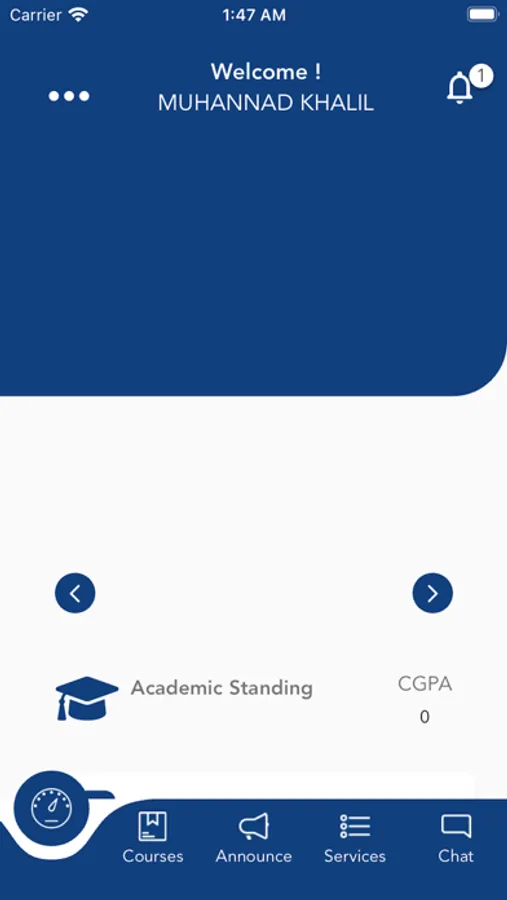 GULF University Student App dashboard is the primary place for students where they can check for their CGPA, academic standing, update their personal information and can check for University news. On the other hand, highlight about latest events in Campus and likes brief facts of student academic journey.