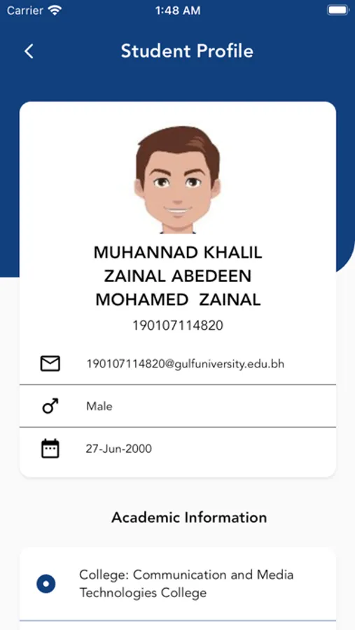GULF University Student App is an extension for the web-based student portal dedicated for undergraduate and graduate students at the GULF University in Bahrain, the App enriches students’ educational experience through improved accessibility, functionality, and enhanced user experience. The app bringing together the information of faculty, students, teaching material, assignments, and student grading in a single platform. The GULF University Student App is designed to provide effective feedbacks by the faculty and enables for the self-learning of students.