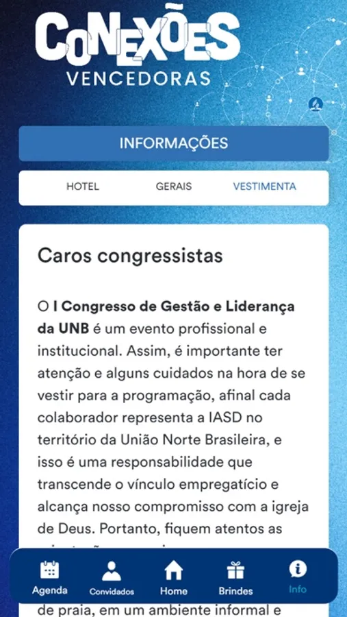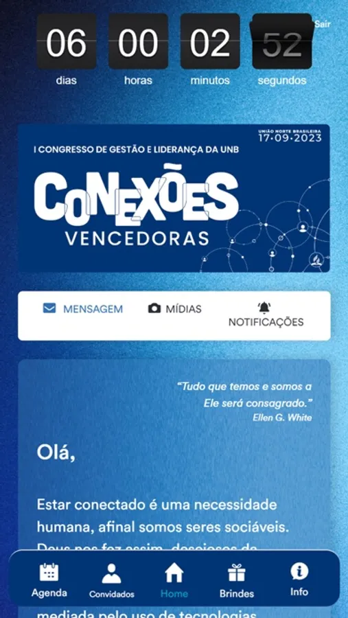 Esse aplicativo será o seu guia para todas as atividades do I CONGRESSO DE GESTÃO E LIDERANÇA "CONEXÕES VENCEDORAS" da União Norte Brasileira da Igreja Adventista do Sétimo Dia.