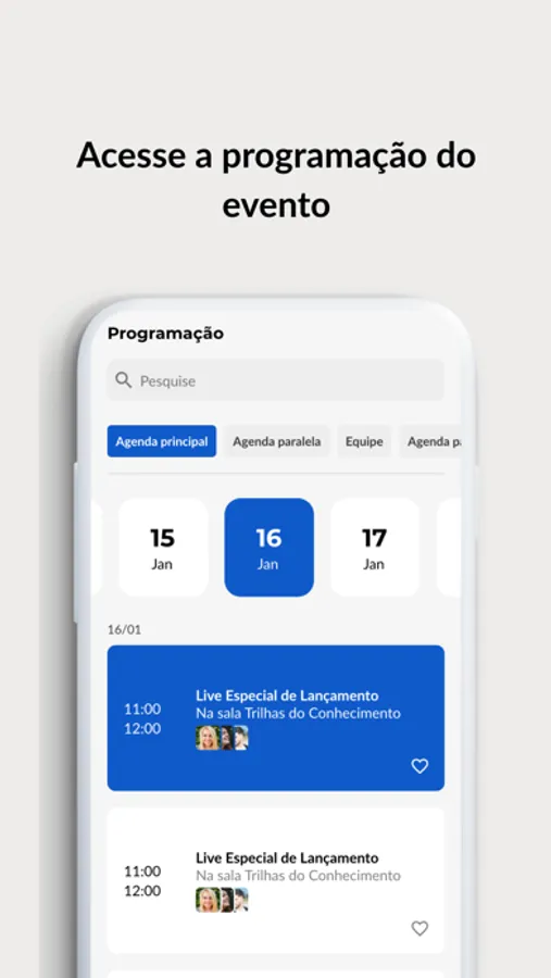 Com o aplicativo do 26º Congresso UNIDAS, você tem acesso a uma rede social exclusiva, pode fazer novos contatos, enviar perguntas aos palestrantes, trocar mensagens com outros participantes, enfim, interagir com a comunidade. Além disso, você pode consultar a programação, avaliar conteúdos, dar feedback e responder quizzes. Utilize o APP e aproveite ao máximo os recursos.