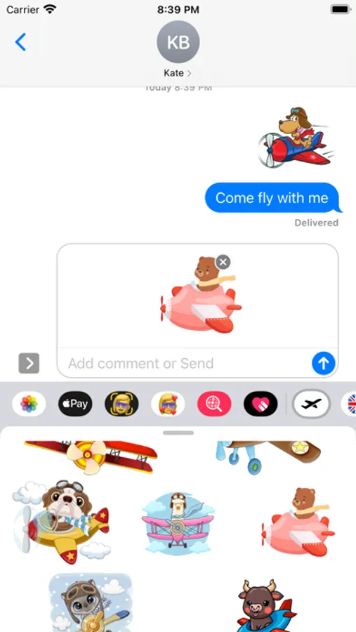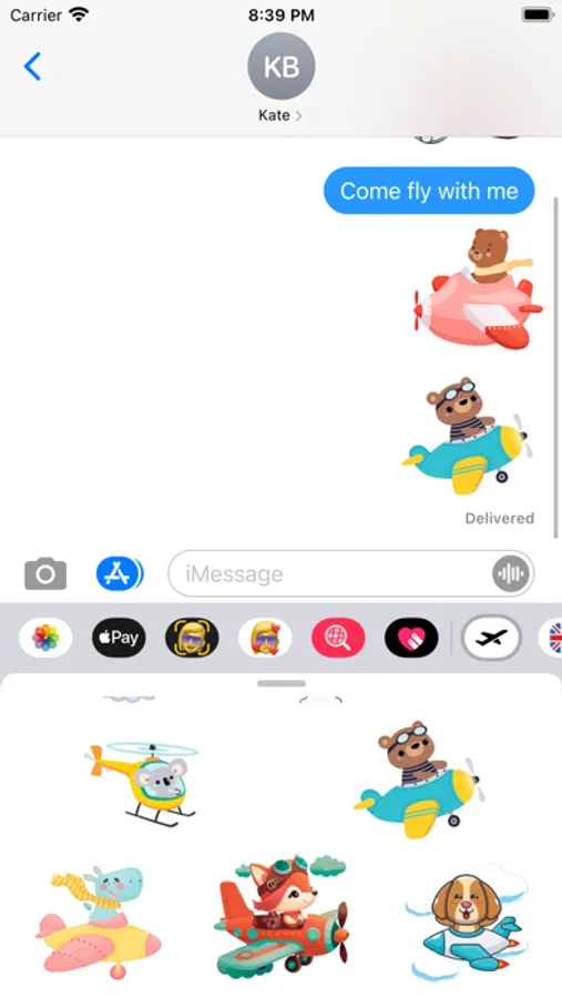 Set of 40 flying cartoon stickers for your iMessage conversations.