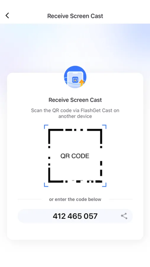 2. On the receiving device, choose to accept the screen cast from other devices. The screen will display a QR code or a code.