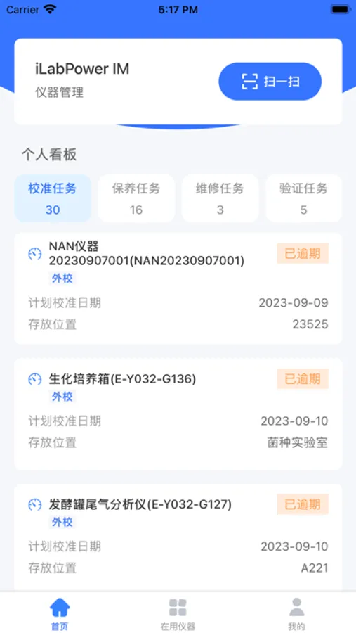 iLabPower IM能够帮助实验人员实时填写使用台账和报修记录,帮助仪器管理员合理安排校准、保养、验证工作,摆脱低效的纸质记录的束缚。