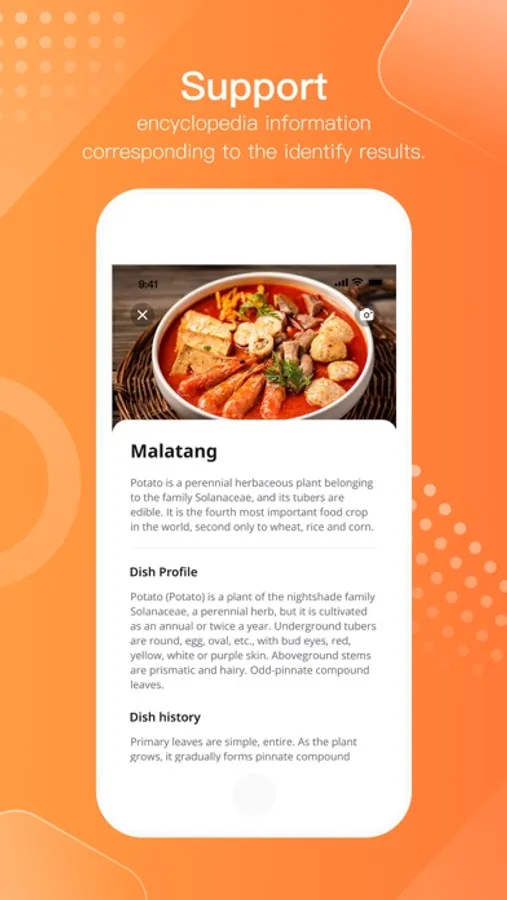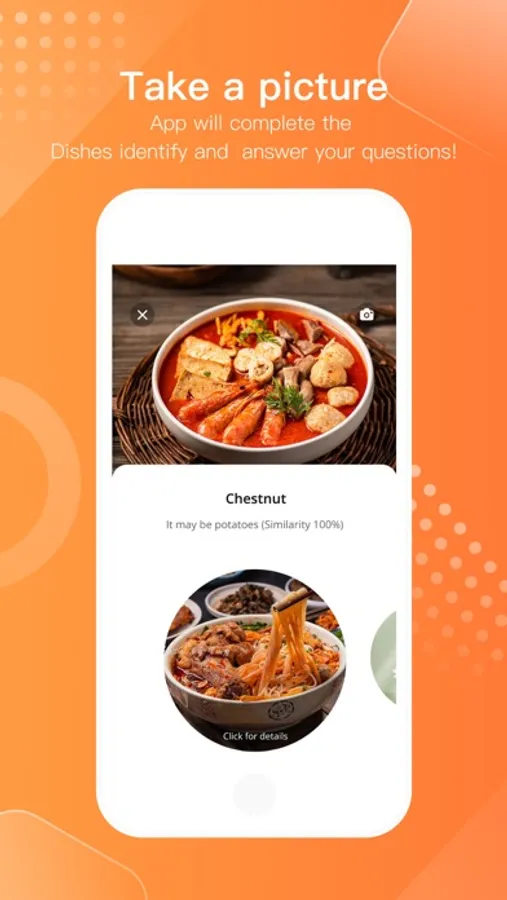 Just take a photo of the dish, and the Dish App will complete the dish identification, obtain the dish's reference calorie content, encyclopedia information, etc. to answer your questions!