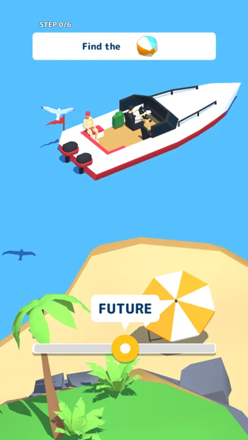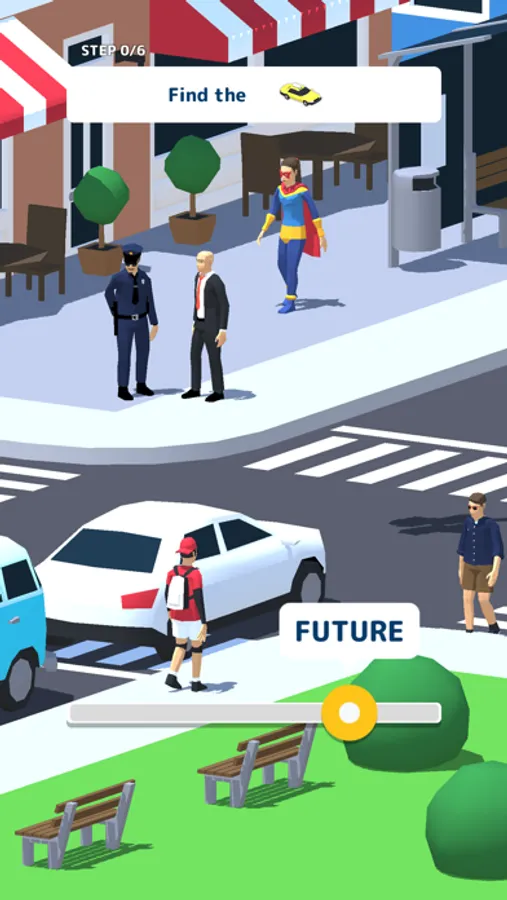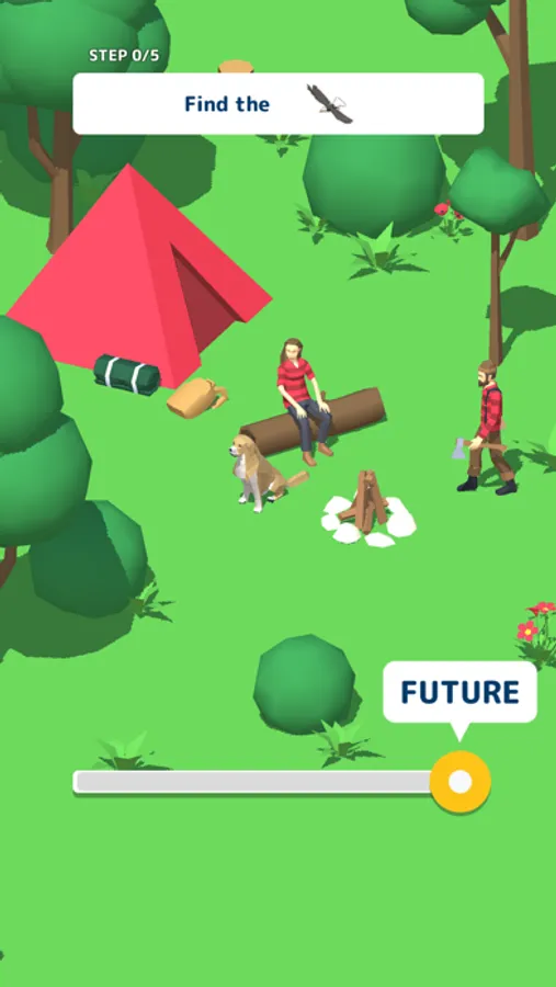 This is a game where you go back and forth between "past," "now," and "future" to find and locate various hidden objects. Once you find them, tap to collect them all and complete the scavenger hunt! It all depends on your intuition!