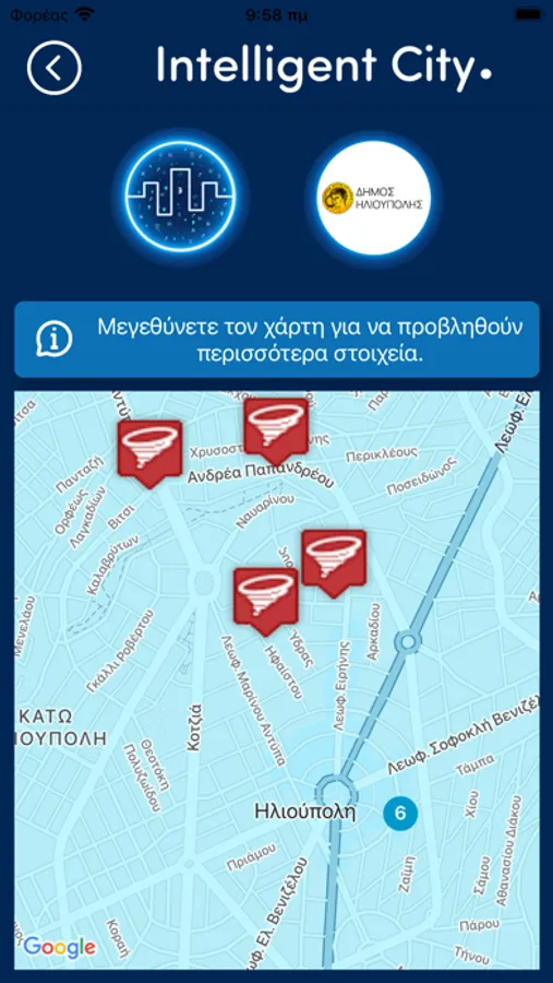 Το intelligentCity δεν είναι μια μελλοντική δράση. Είναι μια πραγματικότητα που μπαίνει στη ζωή μας και πρωταγωνιστεί στην καθημερινότητά μας. Με την διάθεση των δύο πρώτων εφαρμογών του έρχεται να εξυπηρετήσει με τον καλύτερο δυνατό τρόπο την υποβολή και διαχείρισης των αιτημάτων της καθημερινότητας (FixMyCity) , αλλά και να προβάλει εύκολα και απλά το σύνολο των σημείων ενδιαφέροντος σε όλη την Ηλιούπολη (CityPoints).