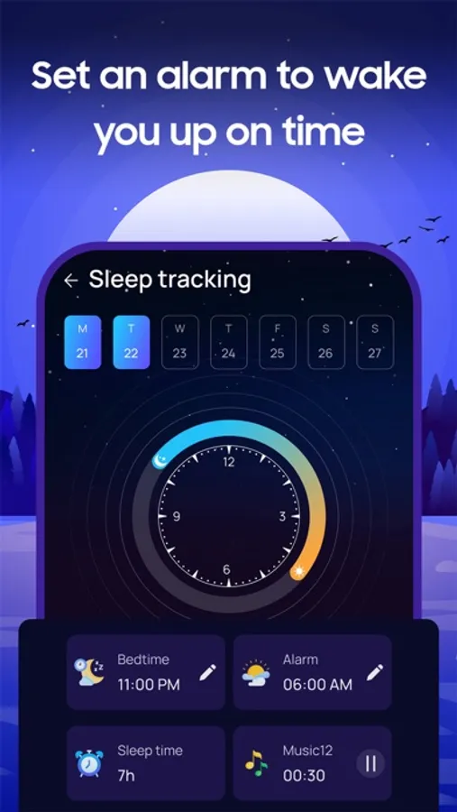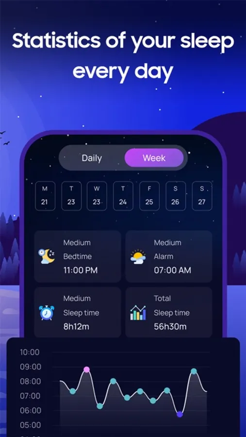 * View daily and weekly sleep statistics with various charts to easily track and analyze your sleep. You can view charts of your sleep time, sleep quality, and sleep stages.