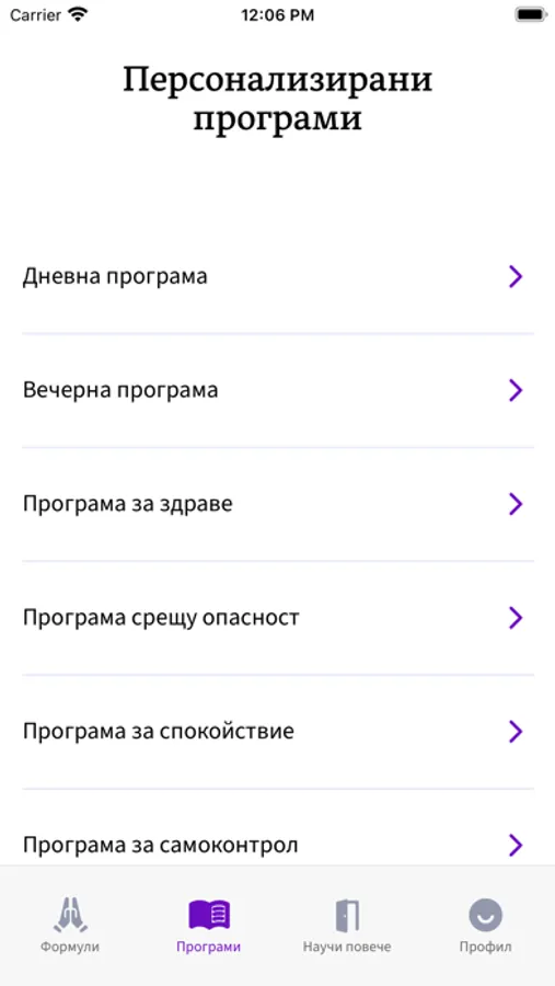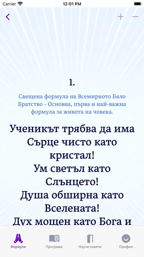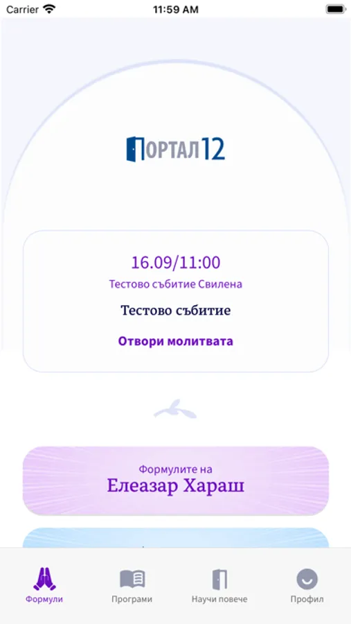 The application "Portal12 - Formulas" is intended for practical self-knowledge and spiritual awakening work. Whether you're looking for daily inspiration or a personalized spiritual journey, this app has got you covered. Easily explore pre-made programs or craft your unique prayer sets, all conveniently categorized by key topics. Dive into the wisdom of two distinguished sources: Eleazar Harash and Master Beinsa Duno, with their distinct sets of Formulas and Prayers.