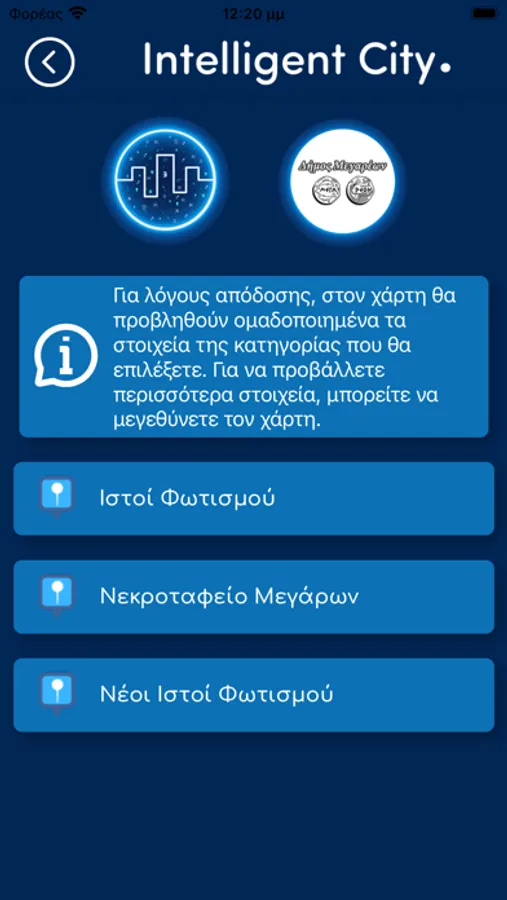 Το intelligentCity δεν είναι μια μελλοντική δράση. Είναι μια πραγματικότητα που μπαίνει στη ζωή μας και πρωταγωνιστεί στην καθημερινότητά μας. Με την διάθεση των δύο πρώτων εφαρμογών του έρχεται να εξυπηρετήσει με τον καλύτερο δυνατό τρόπο την υποβολή και διαχείρισης των αιτημάτων της καθημερινότητας (FixMyCity) , αλλά και να προβάλει εύκολα και απλά το σύνολο των σημείων ενδιαφέροντος σε όλο το Δήμο Μεγαρέων (CityPoints).