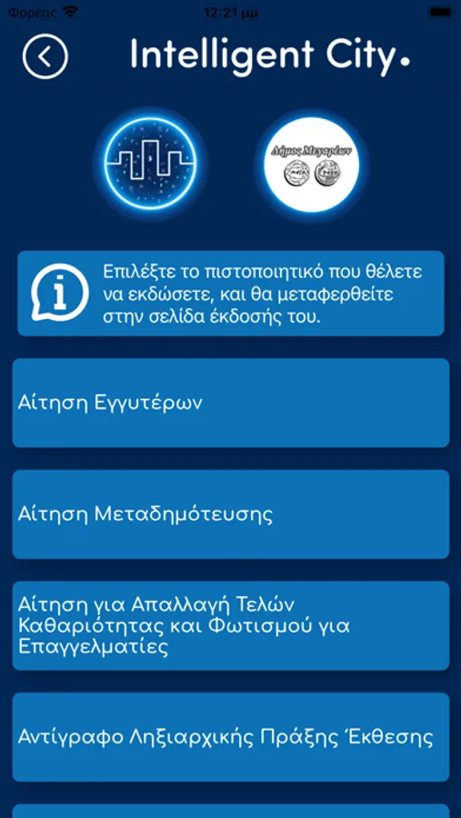 Τέλος, οι Δημότες μπορούν να χρησιμοποιήσουν την υπηρεσία CityCertify του IntelligentCity για να εκδώσουν με απλό και γρήγορο τρόπο τα πιστοποιητικά που επιθυμούν.