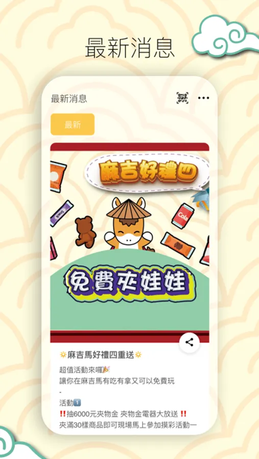 * 最新消息:為您提供各項資訊及推廣,隨時隨地收到各種精彩驚喜、限時優惠。