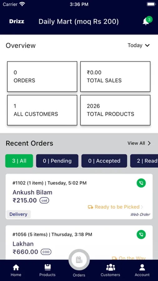 With the Drizz partner app, stores can manage inventory, pricing, and track orders to run their operation efficiently. Set offers and deals to attract customers and get useful insights into the business in order to make useful decisions.