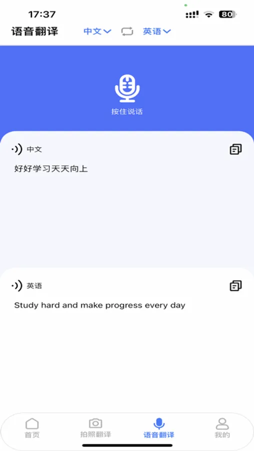 • 语音翻译: 说语音就翻译。