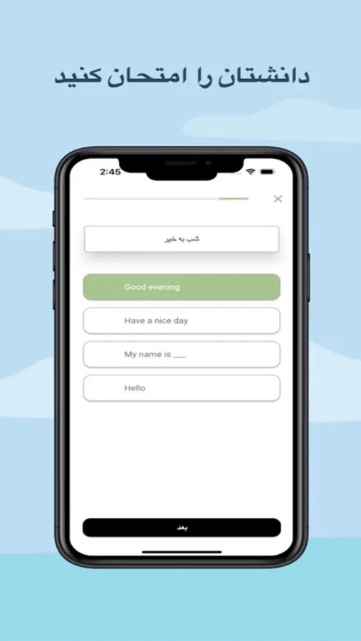 - تست های دستور زبان انگلیسی، واژگان و مکالمه روزانه. شما به تدریج یاد خواهید گرفت و با اطمینان در سطوح مختلف خود پیشرفت خواهید کرد.
