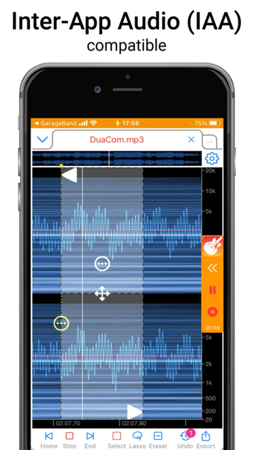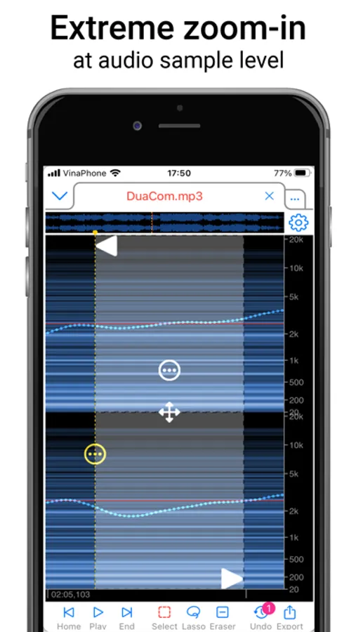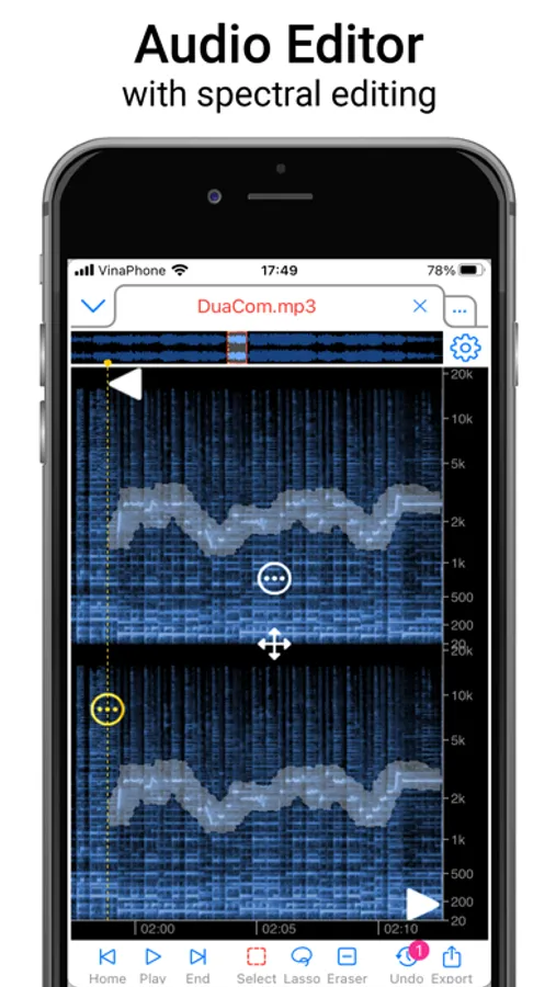 • Displays the audio file in 3 modes: waveform, spectrogram, or both