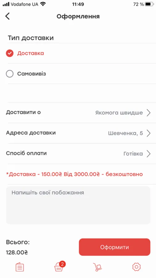 • встановити бажаний час доставки замовлення за вказаною адресою;