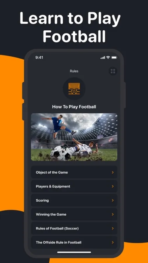 The game of millions, the game that unites, the game accessible to everyone - it's soccer. You love this game with all your heart when you watch it on TV, when you play ball with your friends and sincerely don't understand how professional players miss the goal, thinking that you can do better. Get ready to get closer to your favorite game, there is a lot of cool and incredible information ahead of you, as well as a bunch of amazing discoveries. The history of soccer from its very beginnings, take you back to the very first day when the game was invented. Clarify for yourself all the rules, subtleties and peculiarities of the game, what you can do and what you can not do. Also you are waiting for effective tips and tactics that you can apply during the game with friends and surprise them with your professionalism in the game. And to consolidate everything, and you really could start playing better than before, you will be waiting for exercises that can teach you to play better. Develop your soccer knowledge, develop your personal soccer skills, it's all interesting, convenient and in one application! Your finest hour is coming!