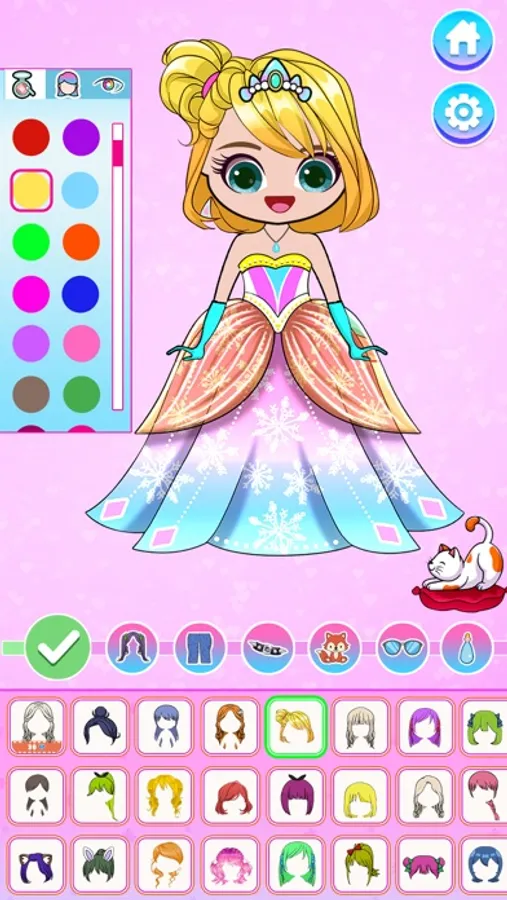 Rich paintbrush and colour palette options are offered to stylize your chibi dolls.