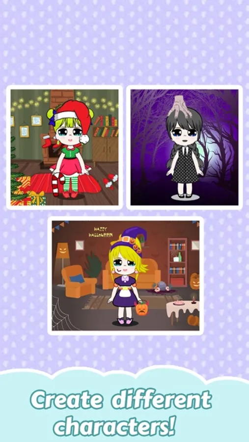 Get your cute doll ready for a spa in the doll spa section of the doll games and clean her well to enter the next segment of doll dress up. Select your preferred hair colour for your chibi dolls while also modifying the style to turn her into a beautiful doll. Dress up your sweet dolls with a range of clothing items and doll outfit suggestions, then enter a gachapon machine to earn additional goods. It's time to choose the eyes, mouth, and brows that will appear on your adorable beautiful doll now. Numerous facial decorations, like freckles, moles, and blush, are available in our cute doll dress up games and doll games. Get your sweet doll some pets so that she doesn't feel lonely. Background is the last touch! You own many wallpapers in pastel colours. So, save your beautiful doll on your phone.