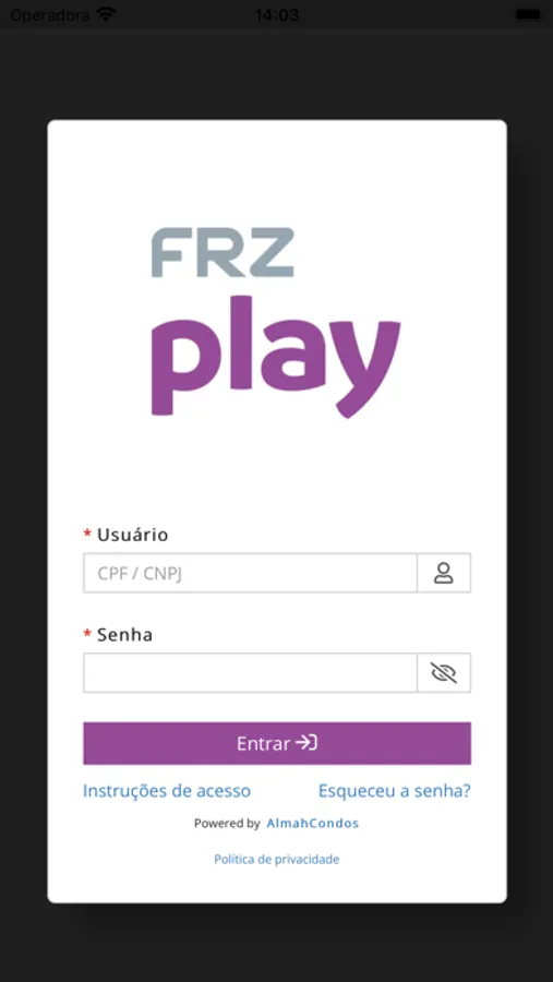 Este aplicativo é exclusivo para usuários da FRZ Play.