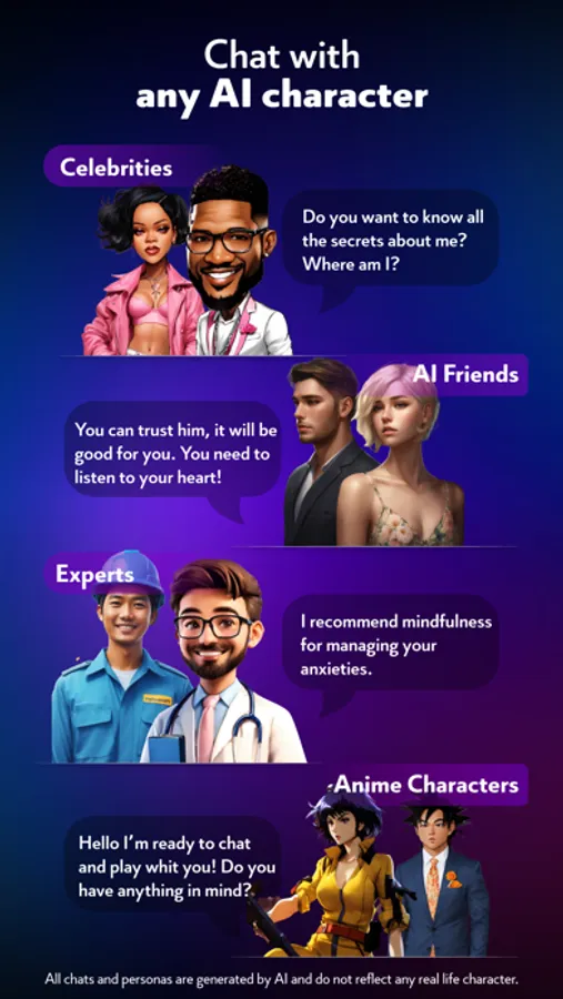 Download now and start talking with your favorite AI celebs today!