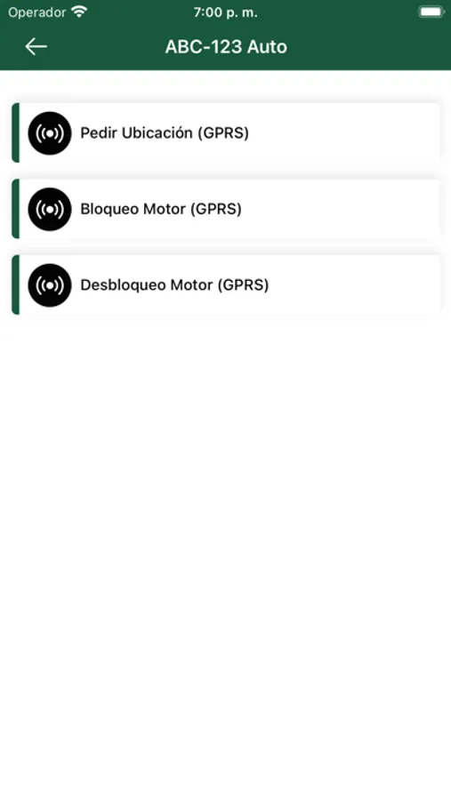* envío de comandos de bloqueo/desbloqueo de motor desde el app