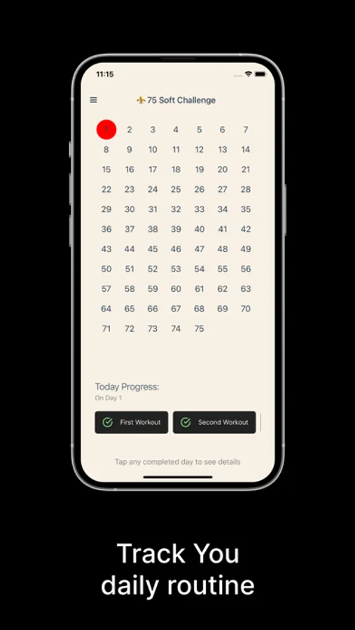 * Challenge Tracker: Seamlessly track your progress over 75 days as you conquer each day of the 75 Soft Challenge. Monitor your fitness triumphs and celebrate every hard-earned victory along your 75-day journey.