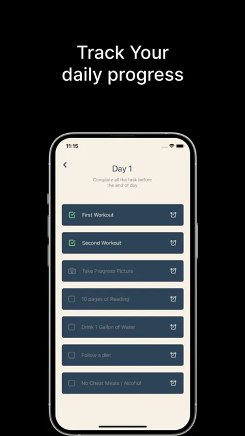 * Daily Reminders: Let the app be your "soft" reminder over the course of 75 days.