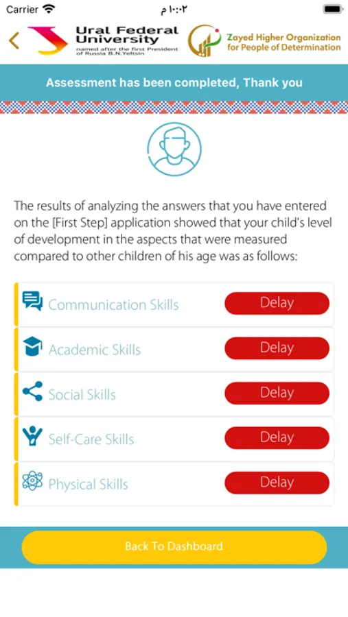 An electronic developmental scale focuses on identifying the aspect that represents apparent delay in the condition, specifying it by measuring against the natural development of children from the age of 1 to 18, encompassing psychological, cognitive, motor, and functional development, followed by speech and language development in the condition, as well as any developmental or sensory disorders (motor, visual, auditory). This is achieved through the response of the parent or caregiver to diverse questions on the application, according to the chronological age of the individual, enabling us to determine the extent of development in the aforementioned aspects or the degree of delay compared to the normal growth and acquisition rate. The application provides an indicator of a delay in one or more of these aspects.