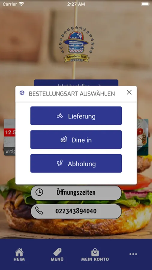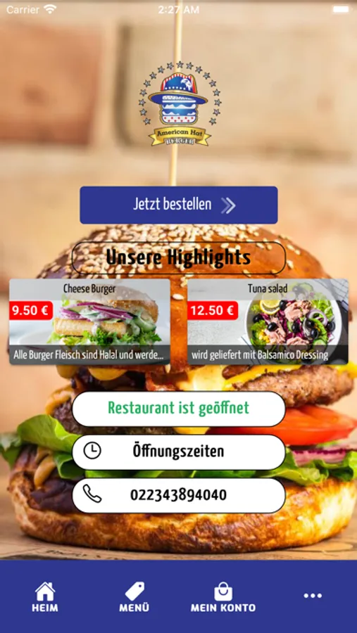 Herzlich Willkommen bei “American Hat Burger” in “Frechen”. Wir bedienen unsere Kunden mit hausgemachten Burgern, die wir von Grund auf selber zubereiten. Wir freuen uns immer wieder neue Kunden unsere frischen und neuen Rezepte vorzustellen und diese mit unseren Burgern zu begeistern. Aus diesem Grund möchten wir Ihnen unsere neue App und unseren Online Shop vorstellen, mit dem Sie problemlos über Paypal, Bar und Kreditkarte bezahlen können.