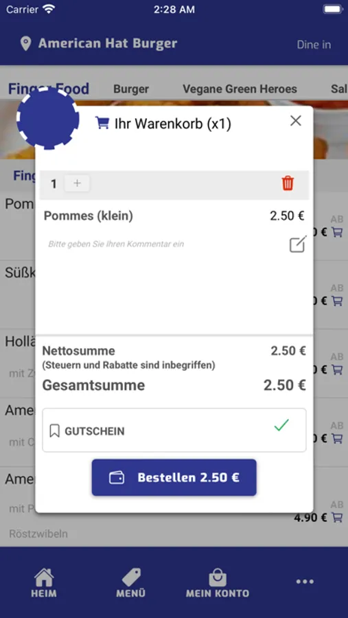 Wir laden Sie ein, es zu versuchen, Sie bekommen bis zu 10% Rabatt auf Ihre Bestellung. Ihr Team von “American Hat Burger” in “Frechen”.