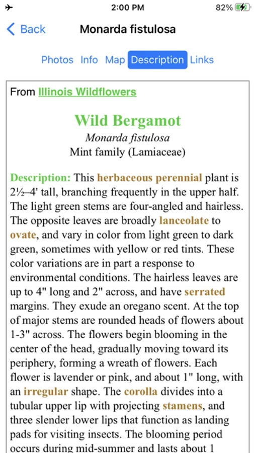 This App, which operates without an internet connection, helps you find and identify plants. When you give the App information about a plant, such as its location, flower color and the time of year, the App will quickly show you which plants match your selections.