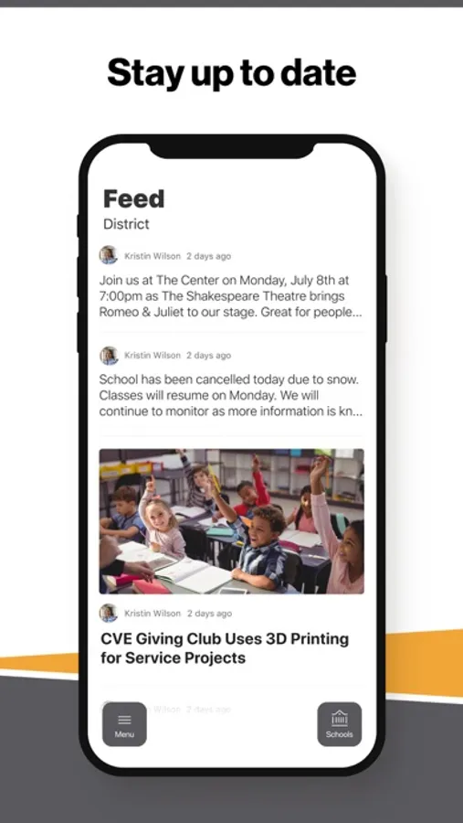 In the Live Feed is where you’ll find updates from the administration about what’s going on in the district right now. Whether that’s celebrating a student’s success, or reminding you about an upcoming deadline.