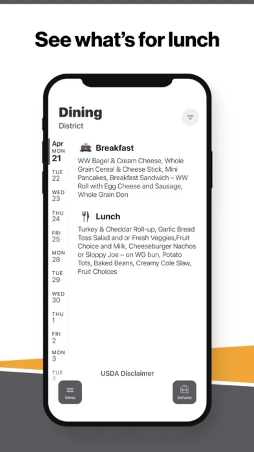 Within the dining section, you’ll find an easy to navigate, weekly menu, sorted by day and meal type.