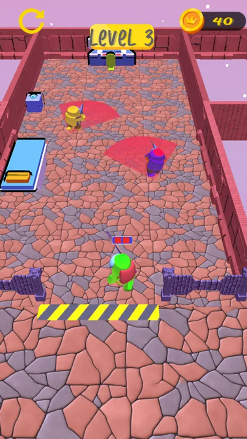 Just a reminder, the crewmates are the ones that are blue, yellow, green, and violet. Your goal is to use your abilities and strength to kill all of the crew members who are still alive. Only you can survive. Become a part of the group of legendary impostors in this addictive hunter imposter game.