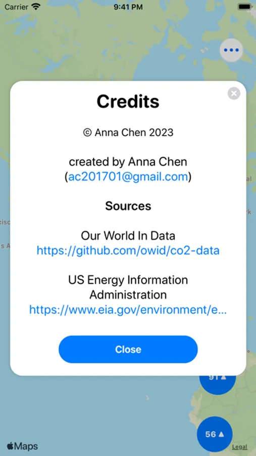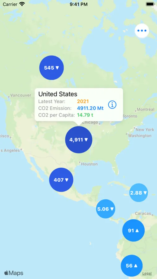 Global Emission is a non-profit app that compiles CO2 emission data from several public sources and displays them on an interactive world map.