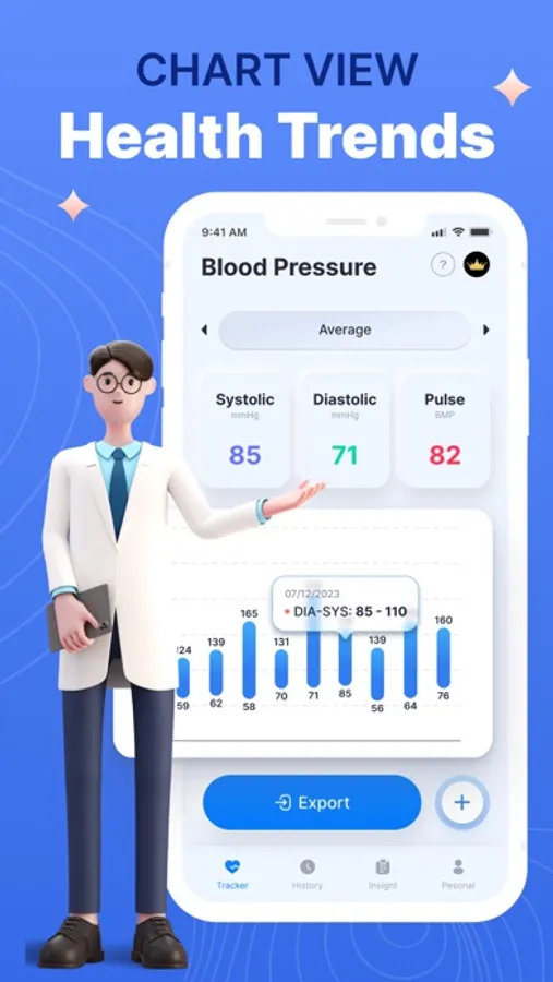 Blood Pressure Tracker a app that helps you monitor your blood pressure at your convenience heart rate, blood sugar, weight, and more.