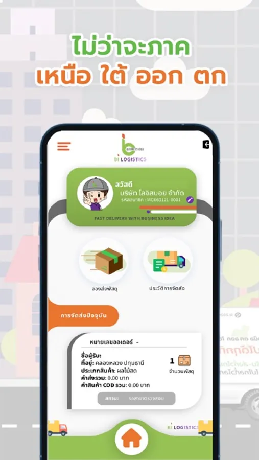 Mobile Application สำหรับลูกค้า เพื่อรองรับการใช้งานการบันทึกข้อมูลออเดอร์ การระบุสินค้าและจำนวน รวมถึงการเรียกดูประวัติการจัดส่งได้