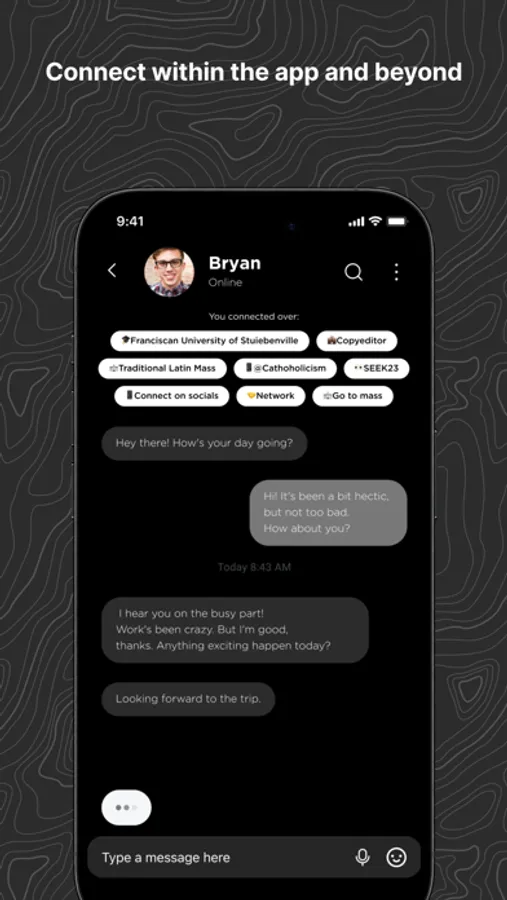 Travelling somewhere? Looking for a fellow Catholic in a specific industry? Want to connect with other people in the same life stage? Use custom filters to find exactly who you need to connect with.