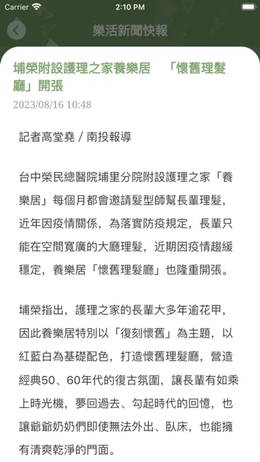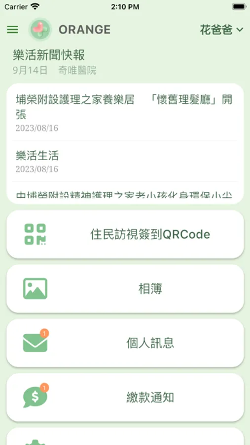 本專案APP應用模組之規劃,提供一個讓住民或家屬方便使用之APP應用程式,經個案綁定後,使用者可開始應用「住民訪視簽到QR code」、「訊息推播」、「繳款通知功能」、「相簿」、「留言板」、「樂活新聞快報」以及「交通資訊」等七個功能。