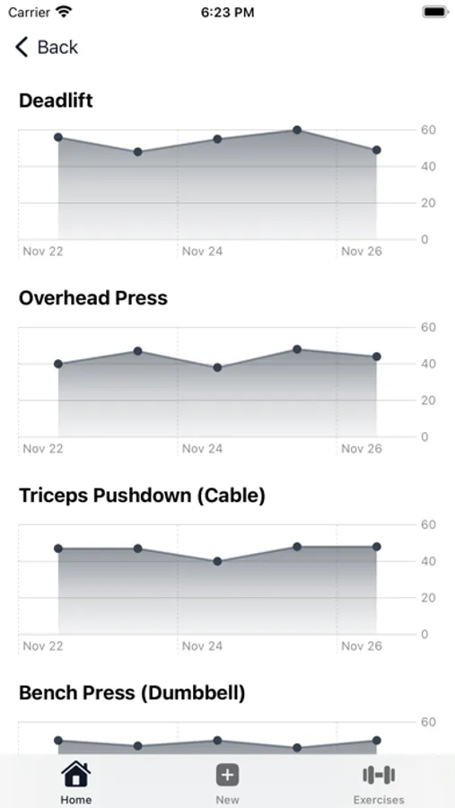Use intuitive charts to track and display your clients' fitness progress. These visual aids are perfect for monitoring improvements in strength, endurance, and other fitness goals.